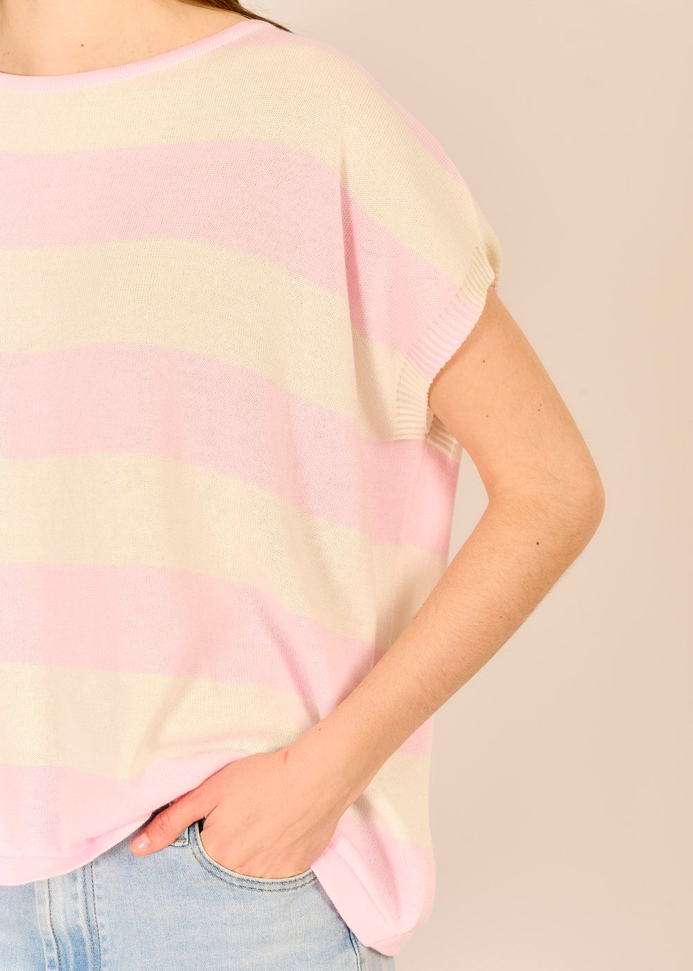 Der gestreifte Pullover bringt Frische und Leichtigkeit in deinen Look. Dank des lässigen Kurzarmschnitts verleiht er entspannten Tagen einen Hauch La dolce Vita. Die Baumwolle sorgt für ein angenehmes Tragegefühl.